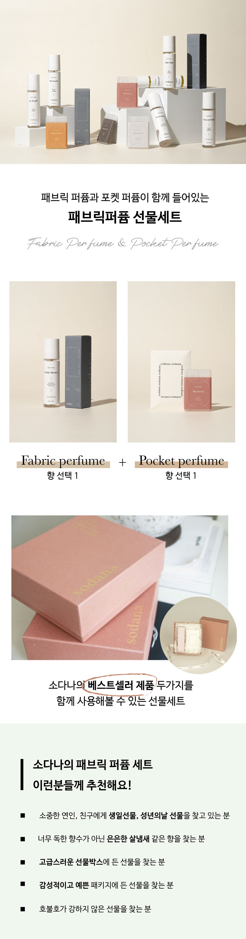 소다나 화이트샤워 패브릭 퍼퓸 세트 (섬유향수 + 포켓향수)