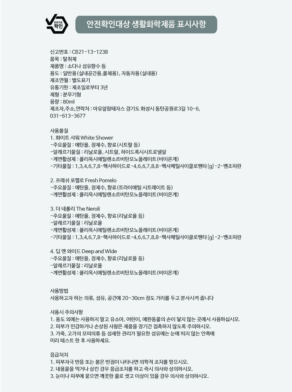 향 선택 (섬유향수 80ml)